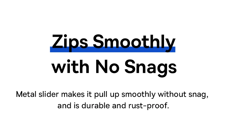 Metal slider makes it pull up smoothly without snag, and is durable and rust-proof.