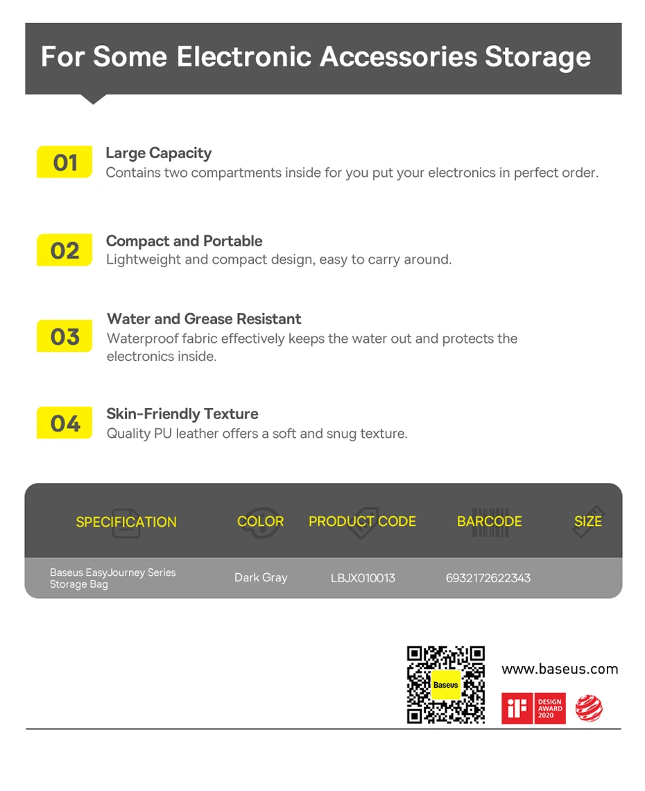 1. Large Capacity: Contains two compartments inside for you put your electronics in perfect order.