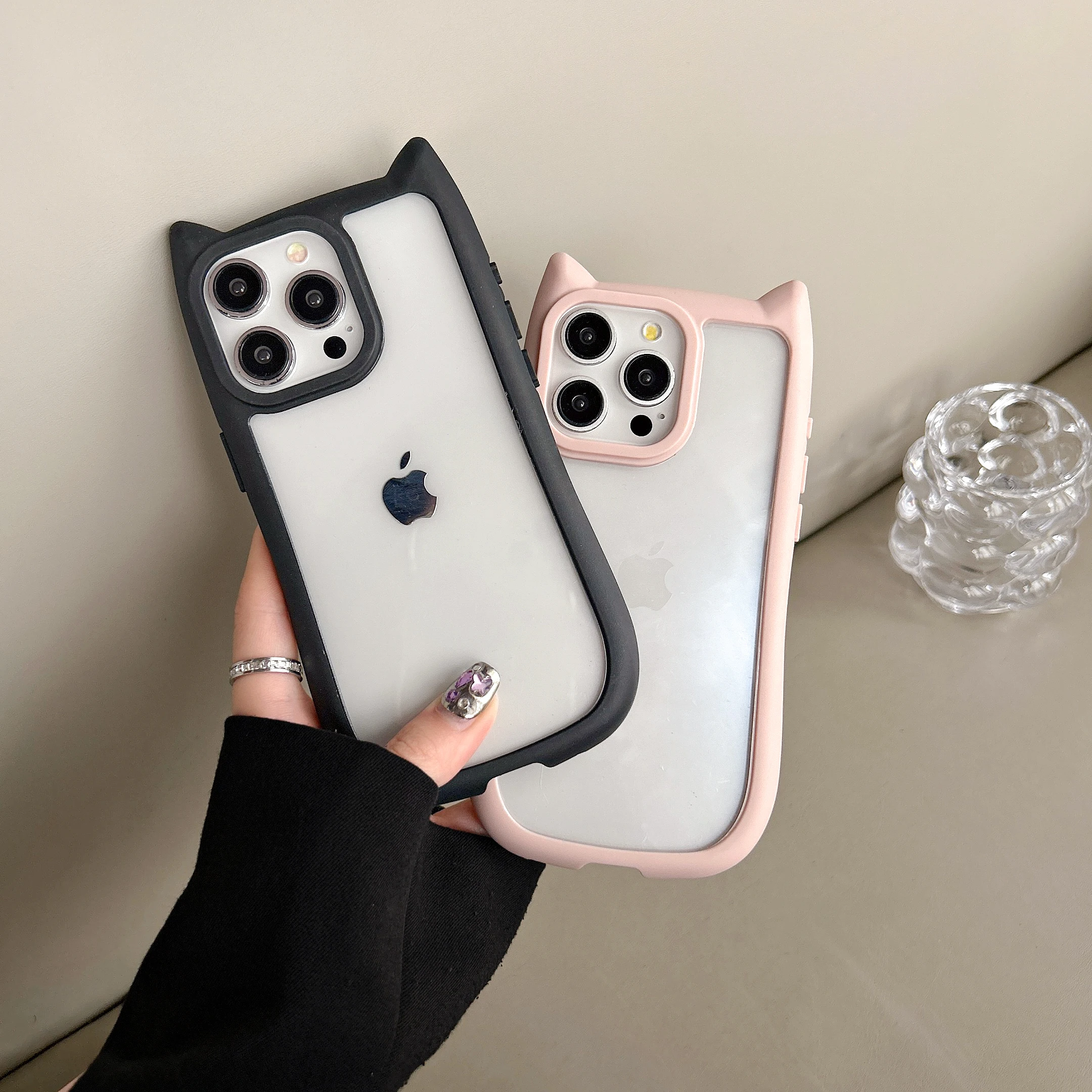 Cat’s ears Phone Case For iPhone 15 14 13 Mini 12 11 Pro Max XR XS X 7 8 Plus SE3 Soft Shockproof Back Cover