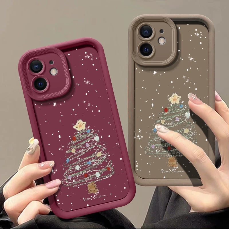 Christmas Tree Printed Soft TPU Case For iPhone 15 16 Pro Max 14 13 Plus 12 11 Pro Max 7 8 XR X XS SE Shockproof Phone Cover