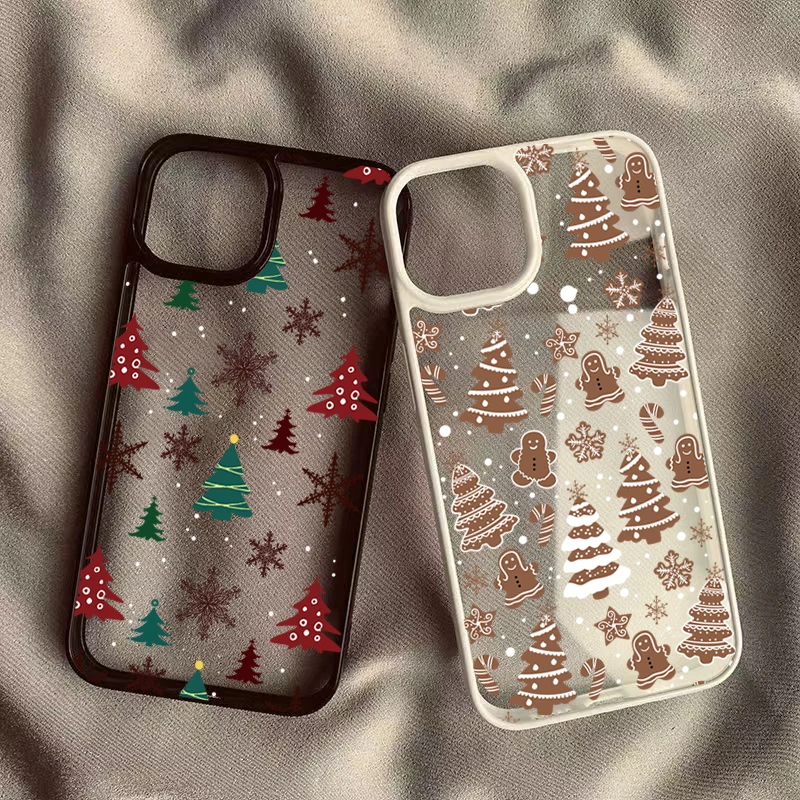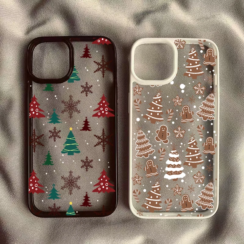 Christmas Tree Snowman Phone Case For iPhone 16 15 Pro Max Plus 14 13 12 11 Mini XR X XS Max 7 8 Plus SE2 Shockproof Clear Cover