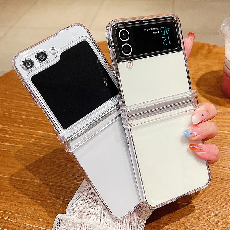 Clear Phone Case For Samsung Galaxy Z Flip 6 5 4 3 5G Shockproof Folding Transparent Hard Cover For Samsung Z Flip5 Flip4 Flip3