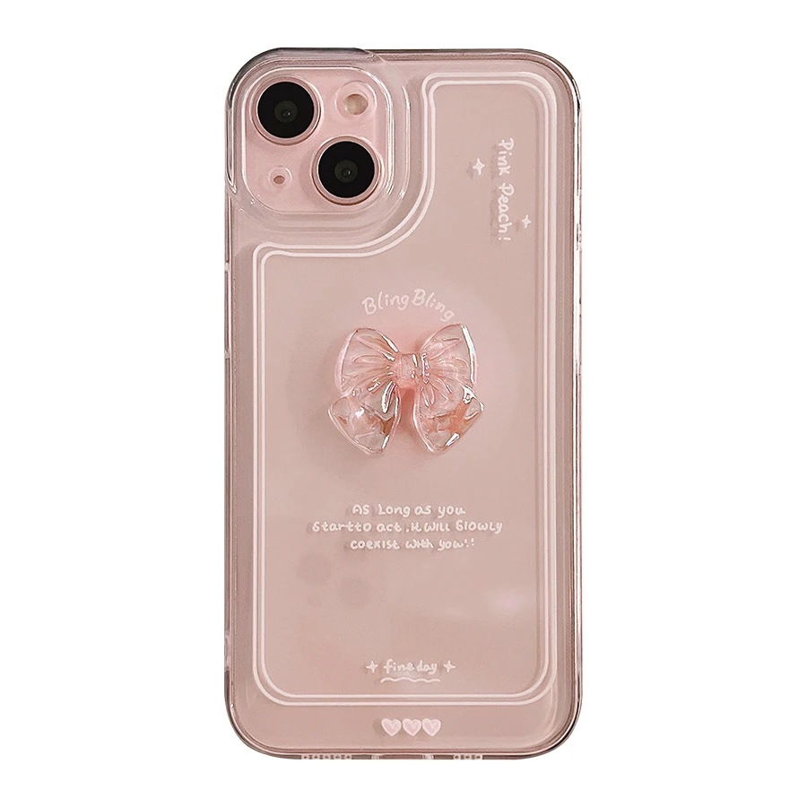Korean 3D Bow Clear Soft Case for iphone 16 15 14 Pro Max 13 12 Pro 11 X XR XS 8 Plus SE3 MiNi Candy Cute Transparent Cover