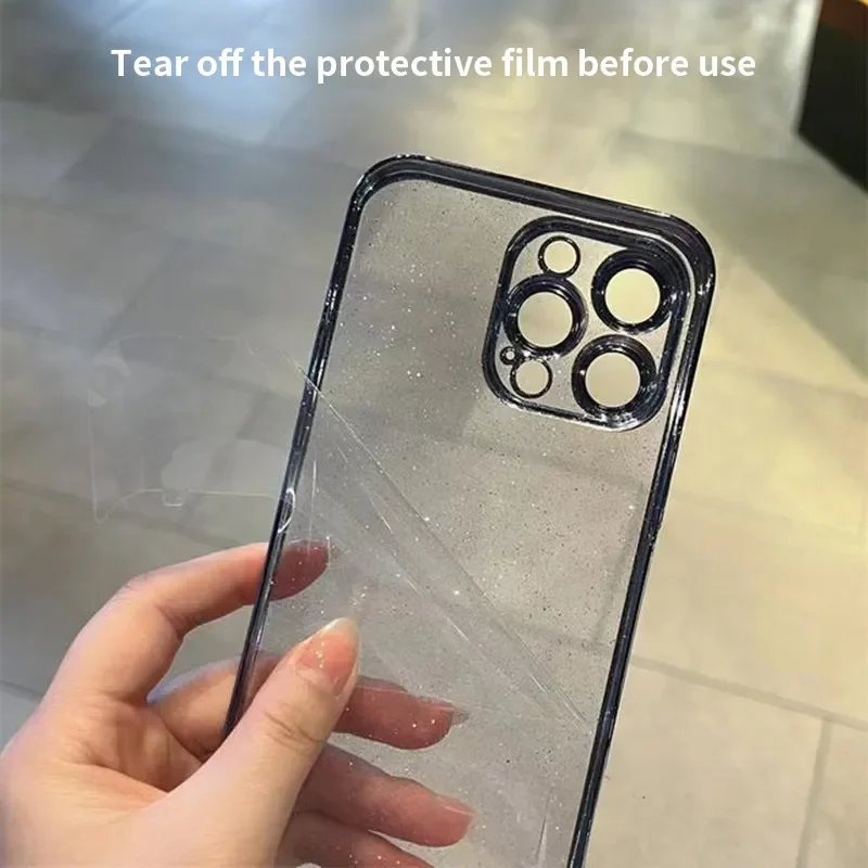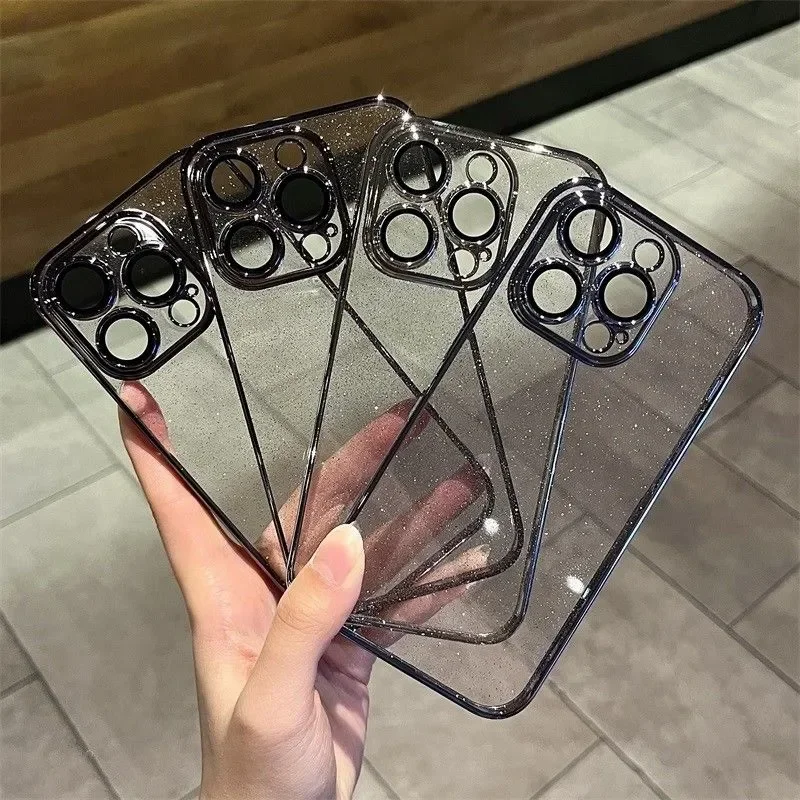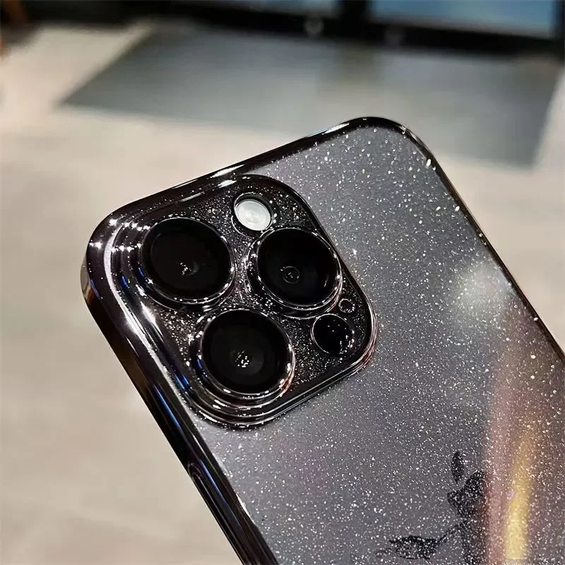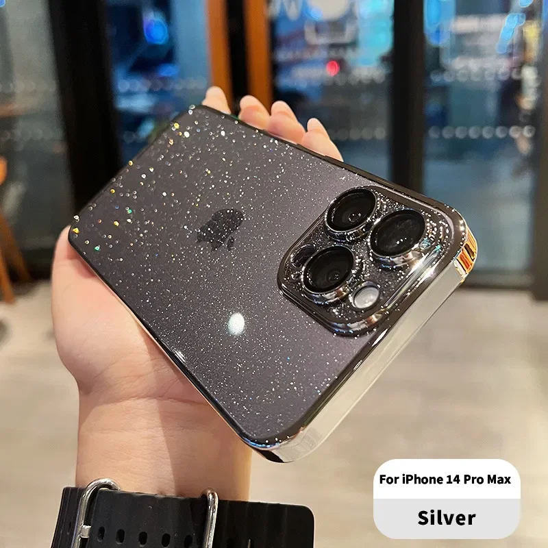 Luxury Electroplated Glitter Phone Case For IPhone 16 15 14 13 12ProMax Clear Transparent Shockproof Hard Back Protective Cover