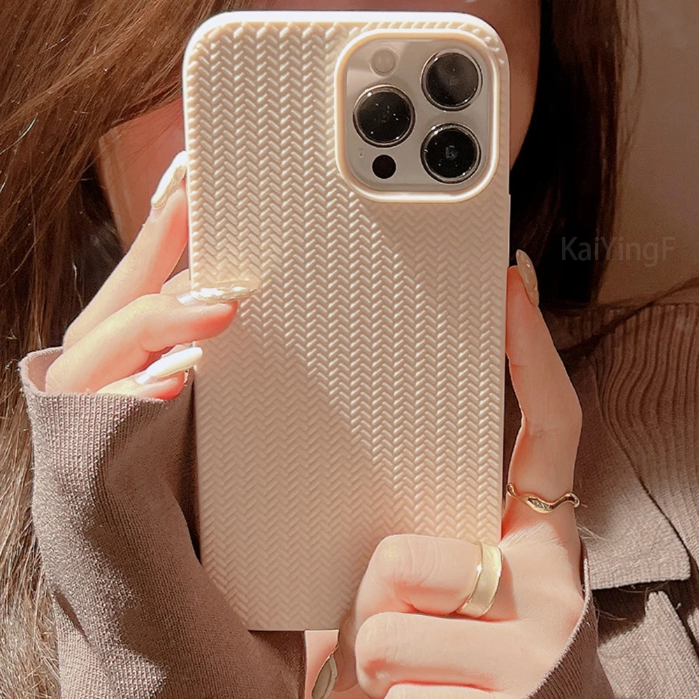 Luxury Knitting Pattern Case For iPhone 11 12 13 14 15 16 Pro Max X Xs XR Max Plus Bumper Soft Silicone Phone Cases Cover