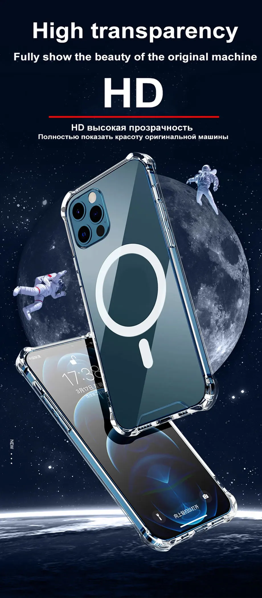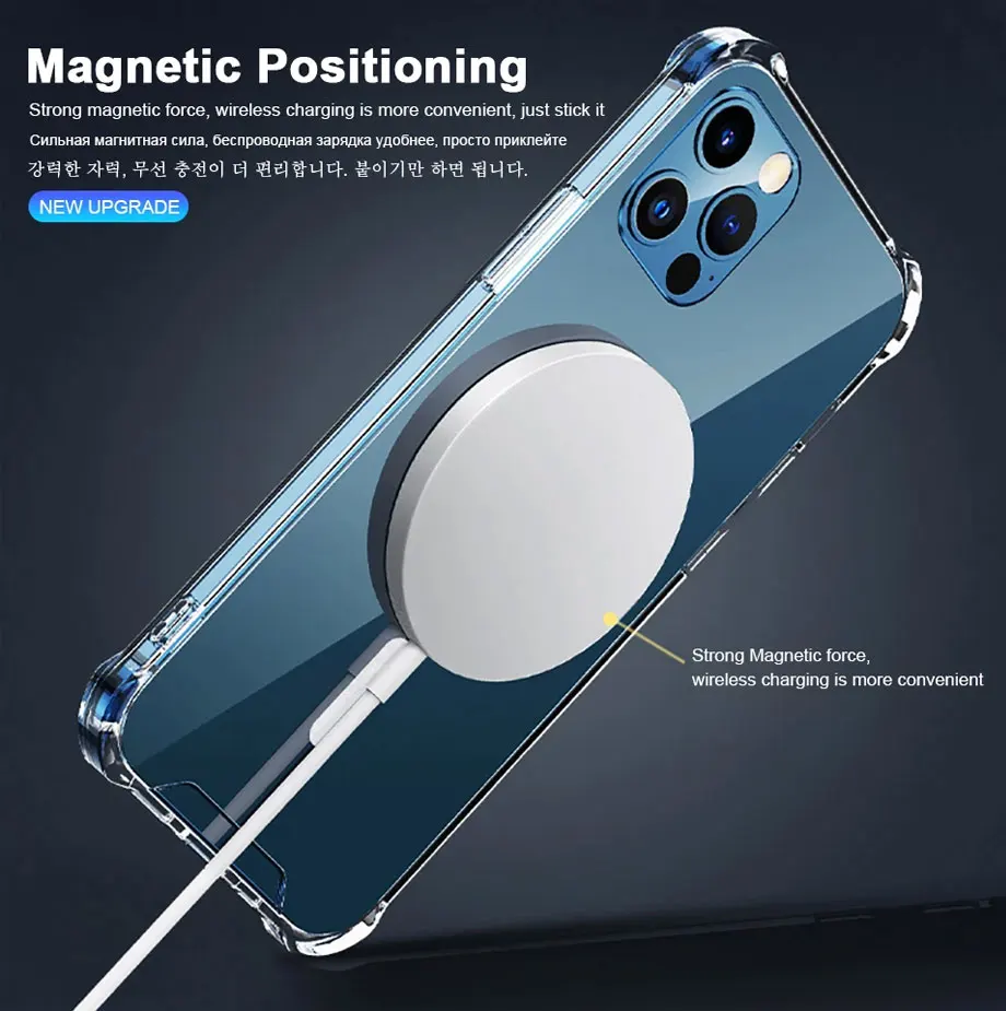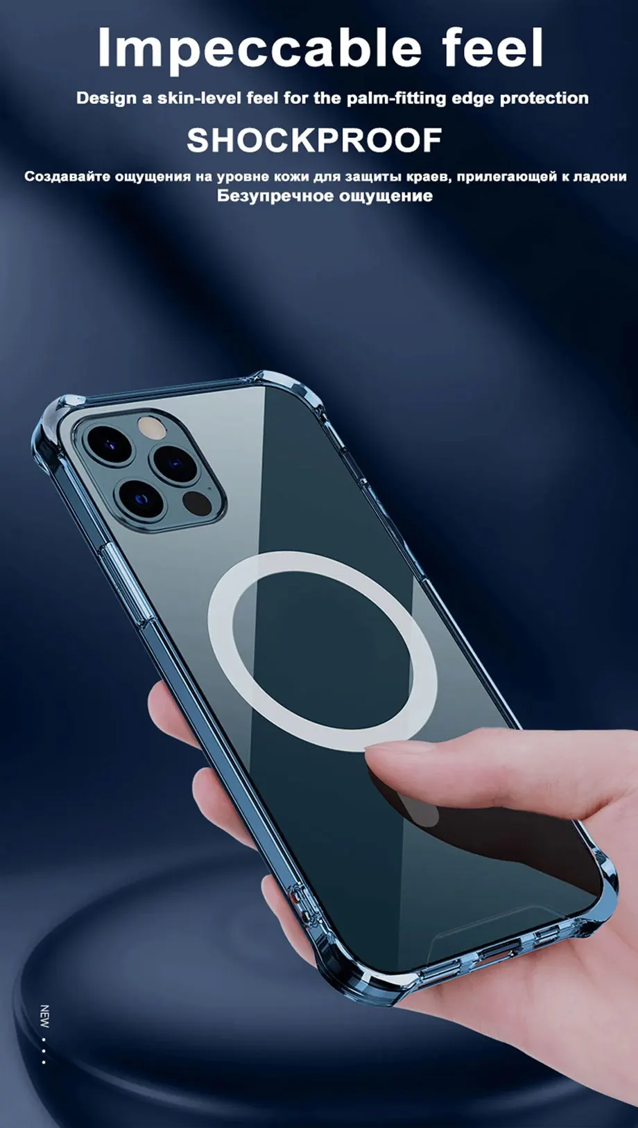 Luxury Magnetic Wireless Charge for Magsafe Case for iPhone 15 14 13 12 11 Pro Max Plus Shockproof Soft Transparent Bumper Cover