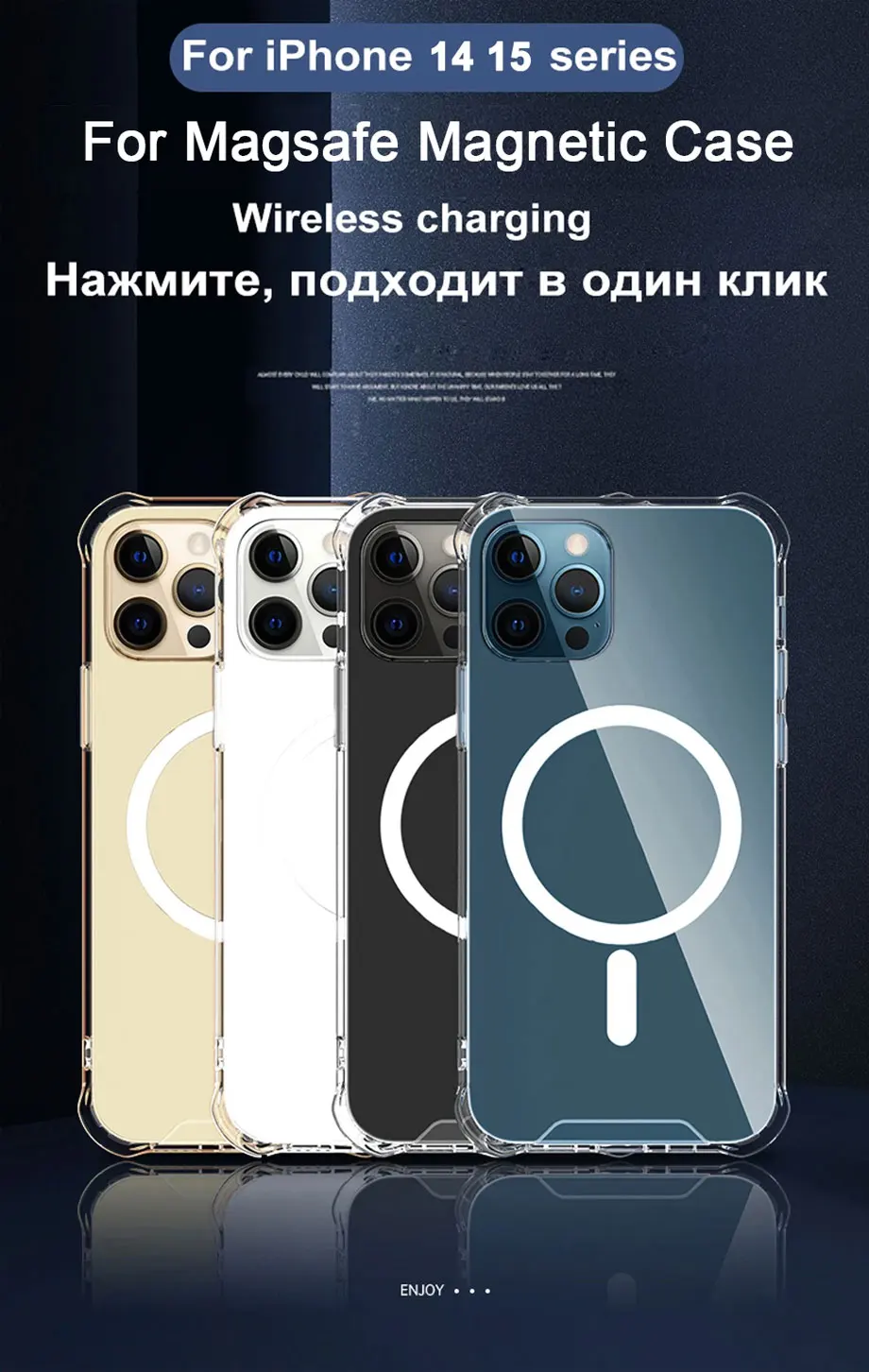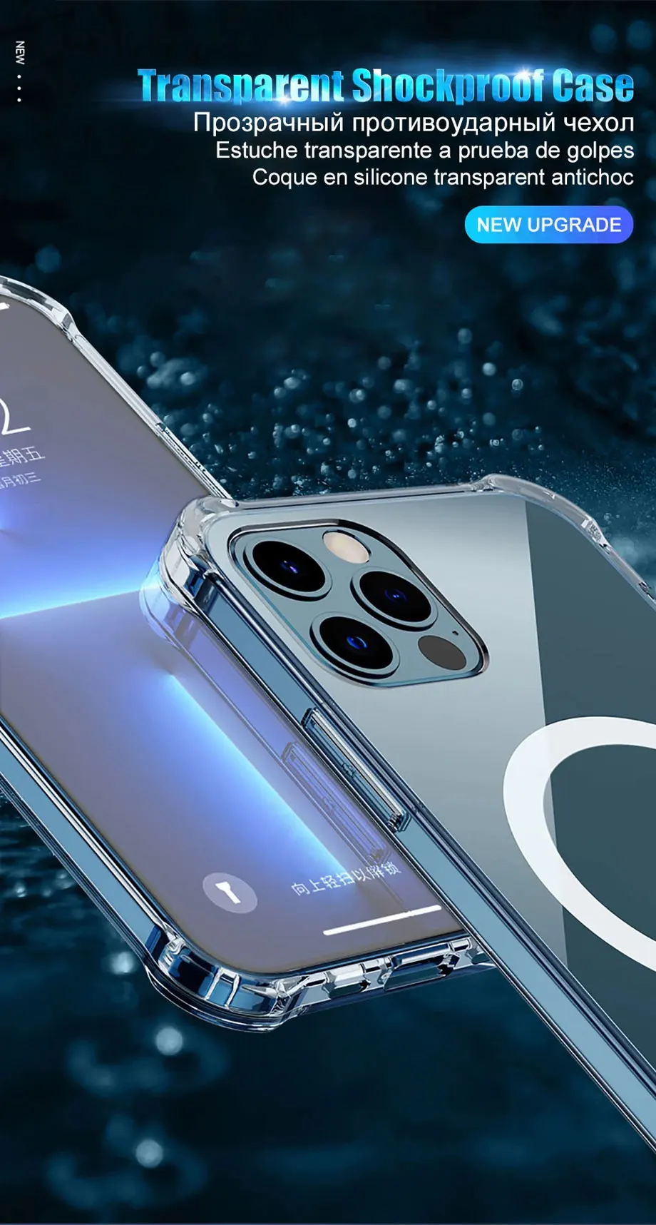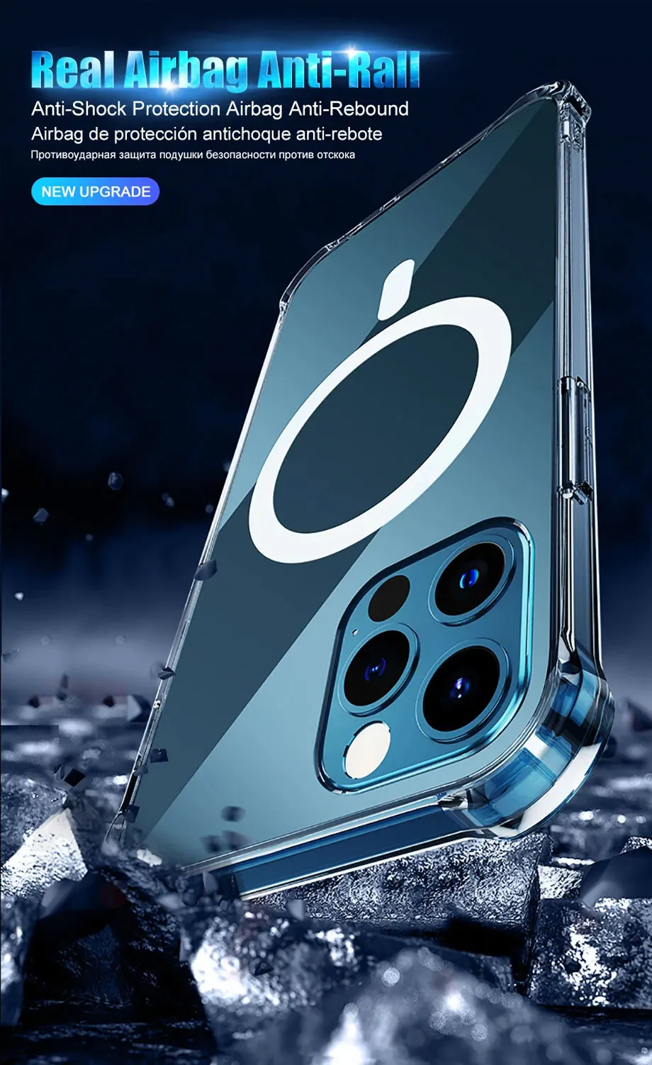 Luxury Magnetic Wireless Charge for Magsafe Case for iPhone 15 14 13 12 11 Pro Max Plus Shockproof Soft Transparent Bumper Cover