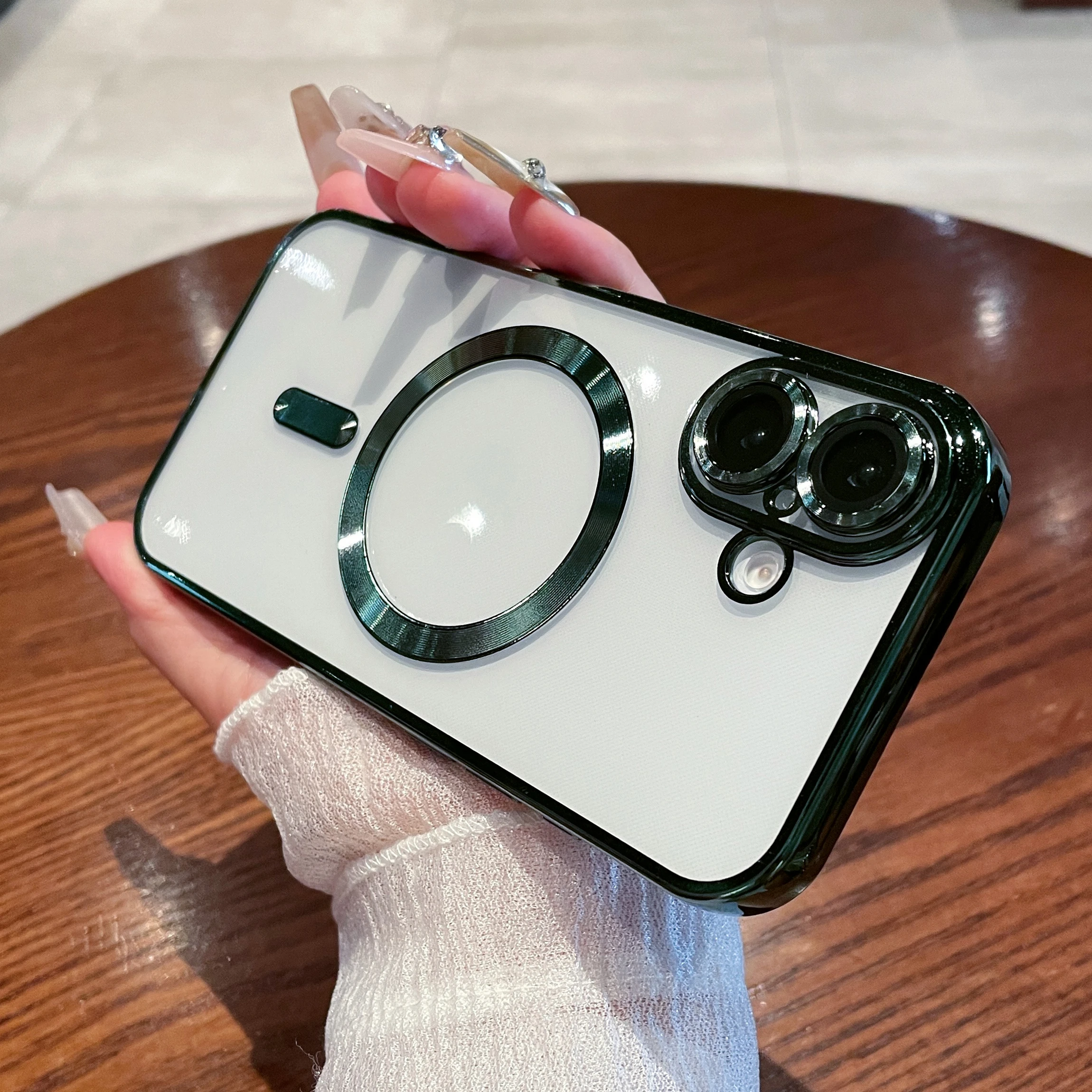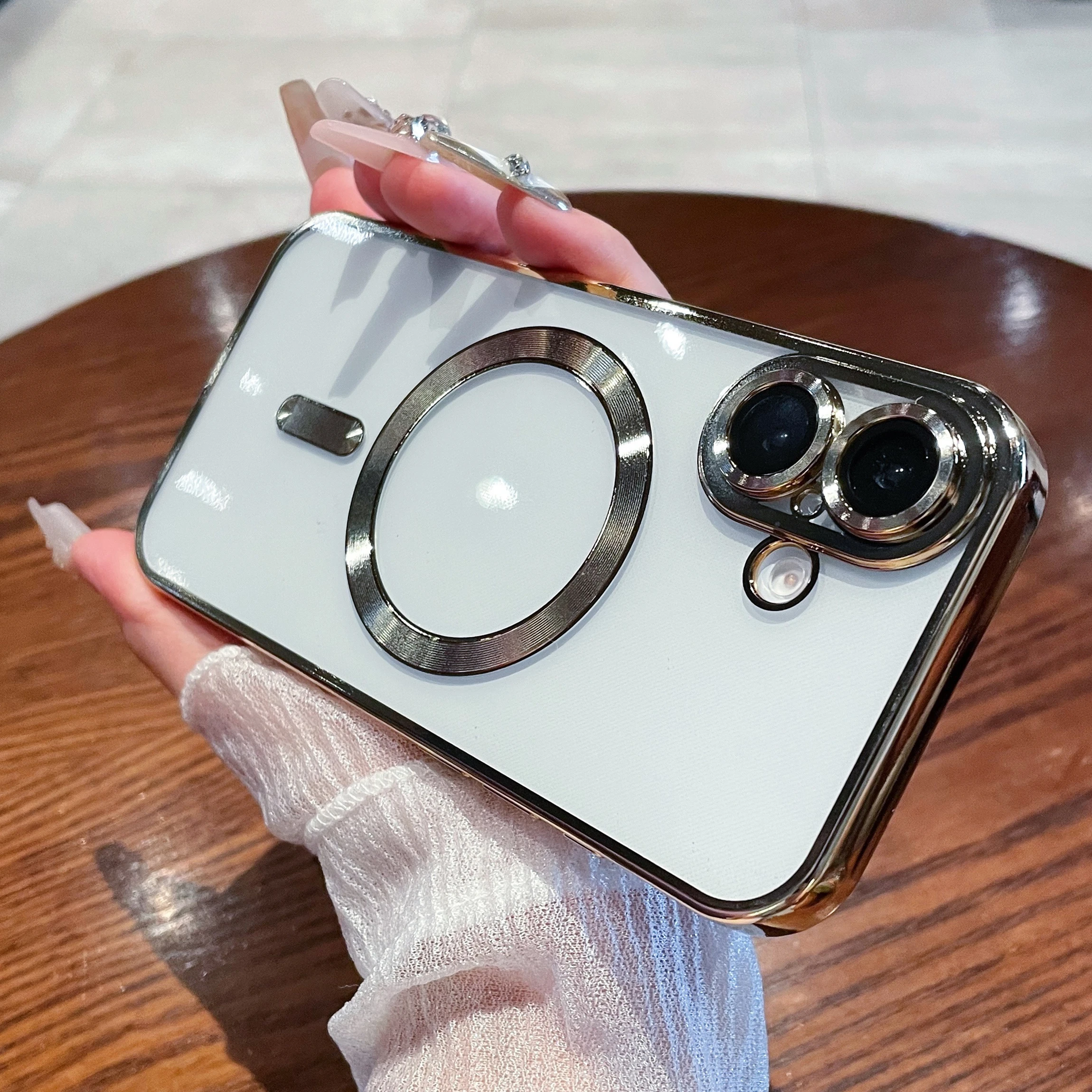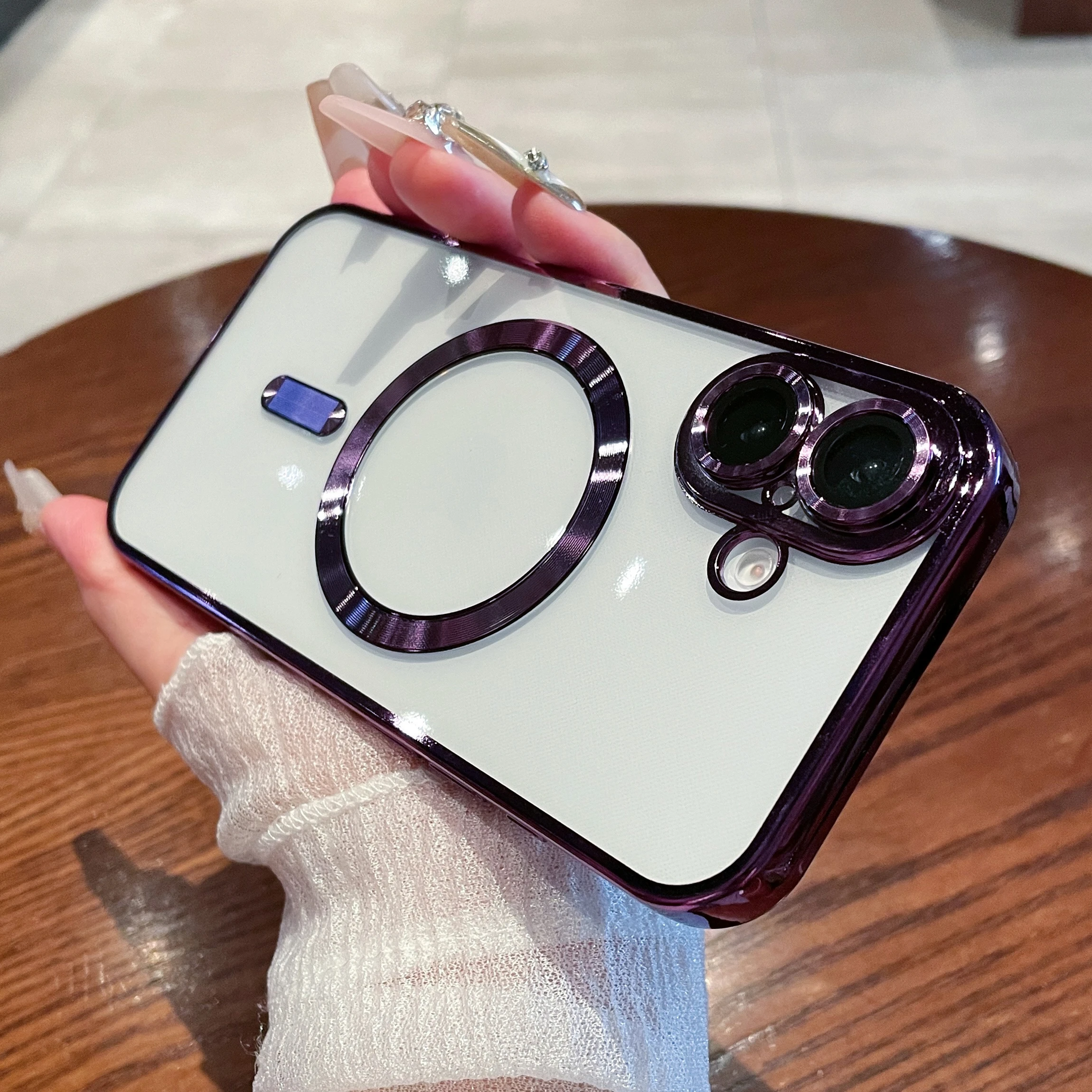 Luxury Plating Magnetic Transparent Phone Case for iPhone 16 15 14 13 12 11 Pro Max Plus for Magsafe Wireless Charge Cover