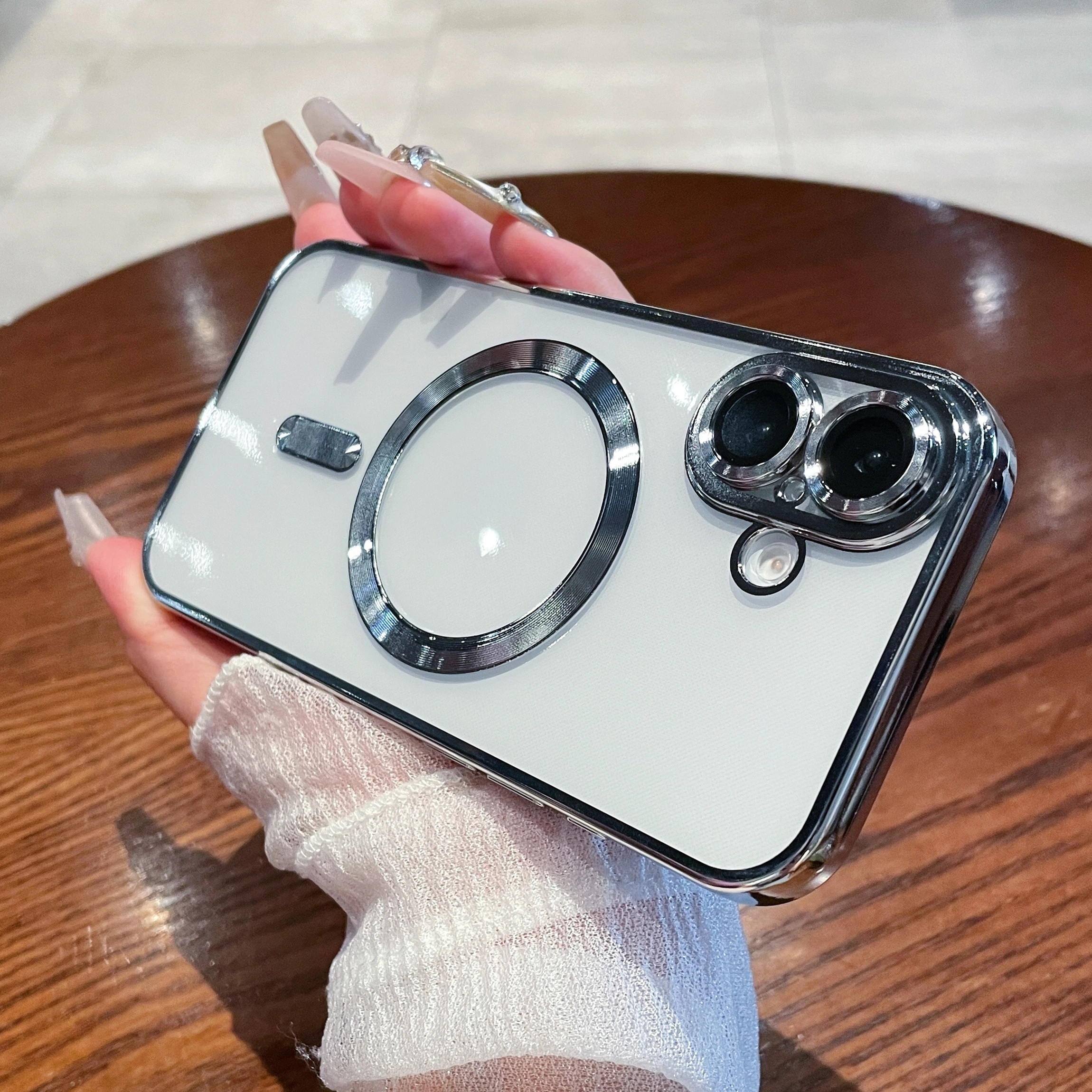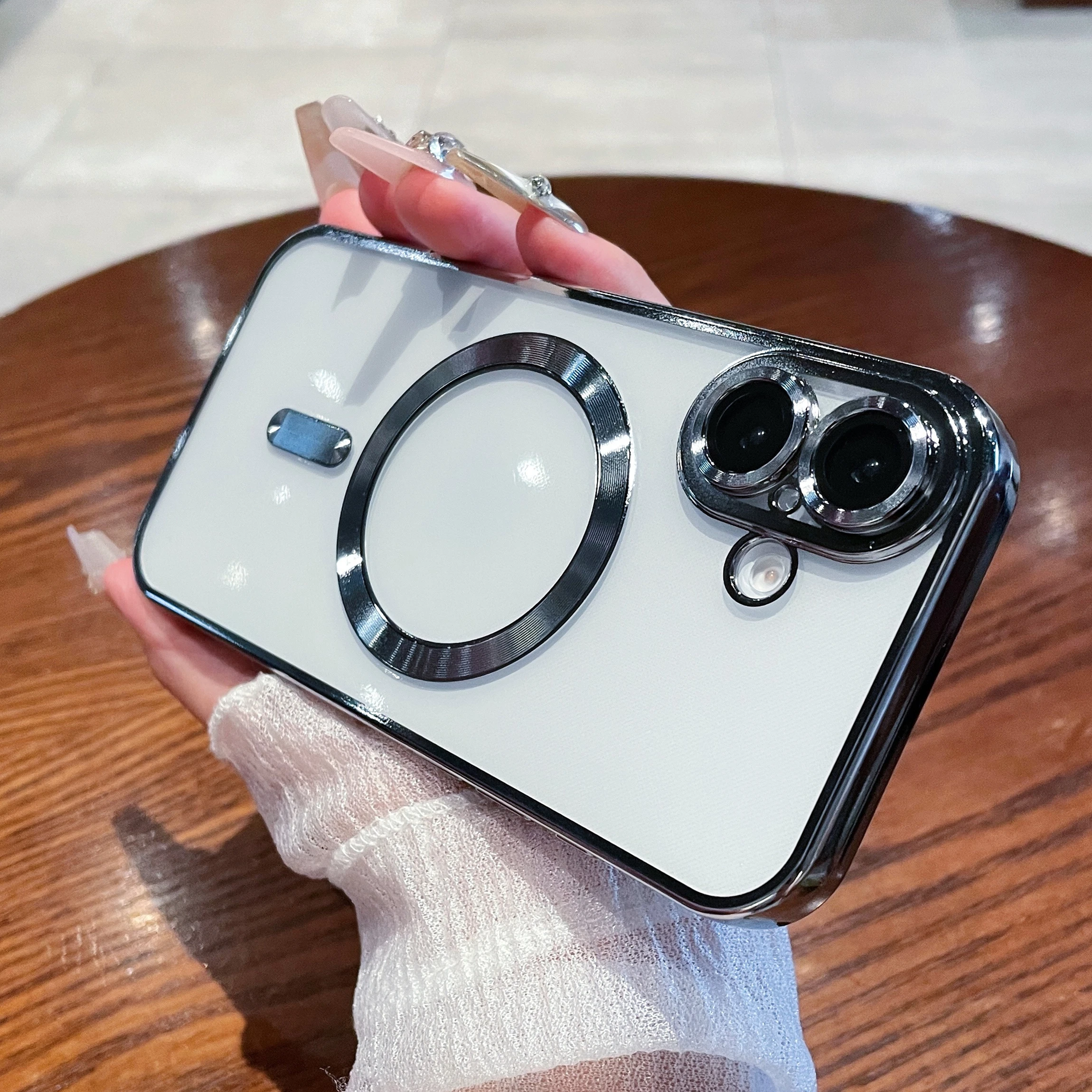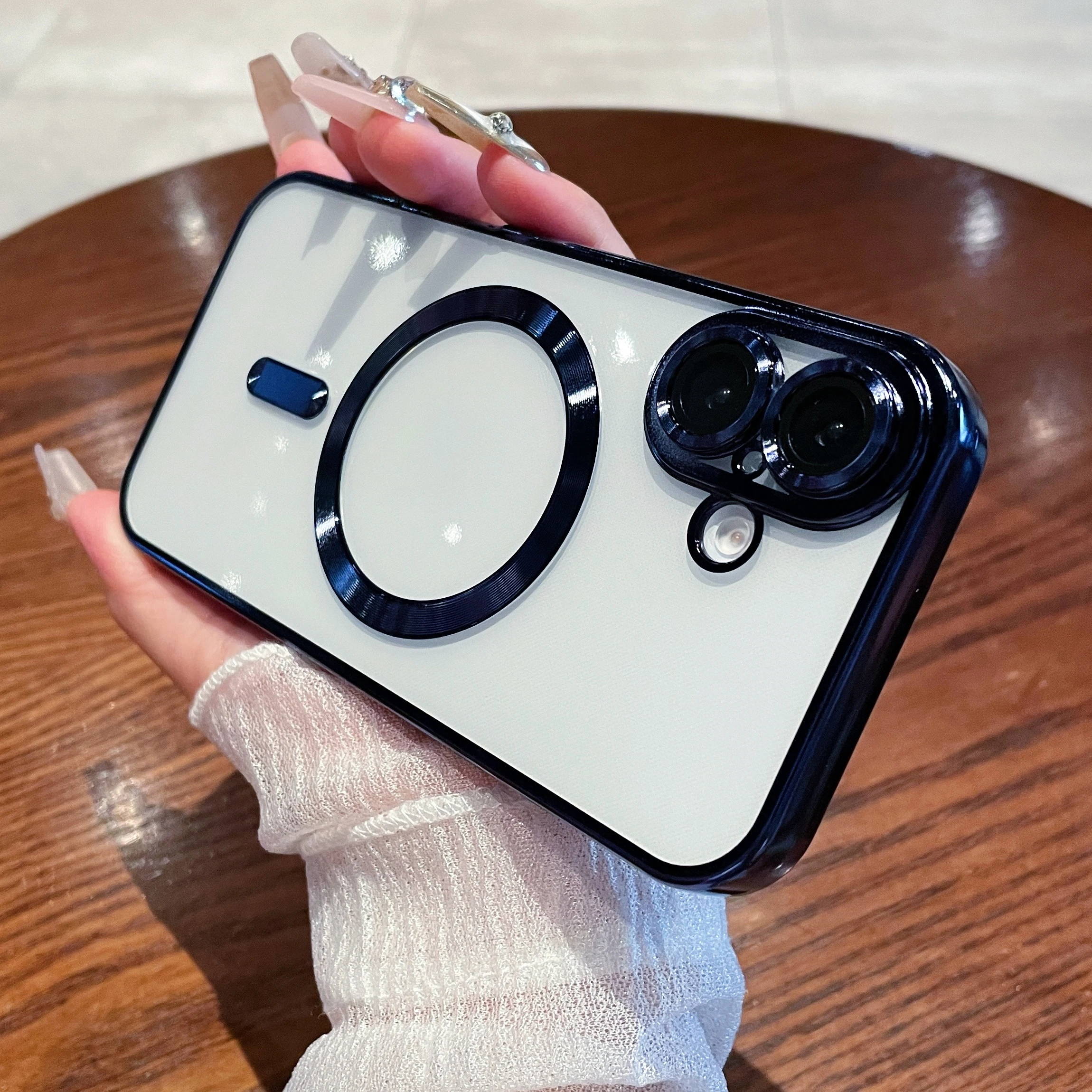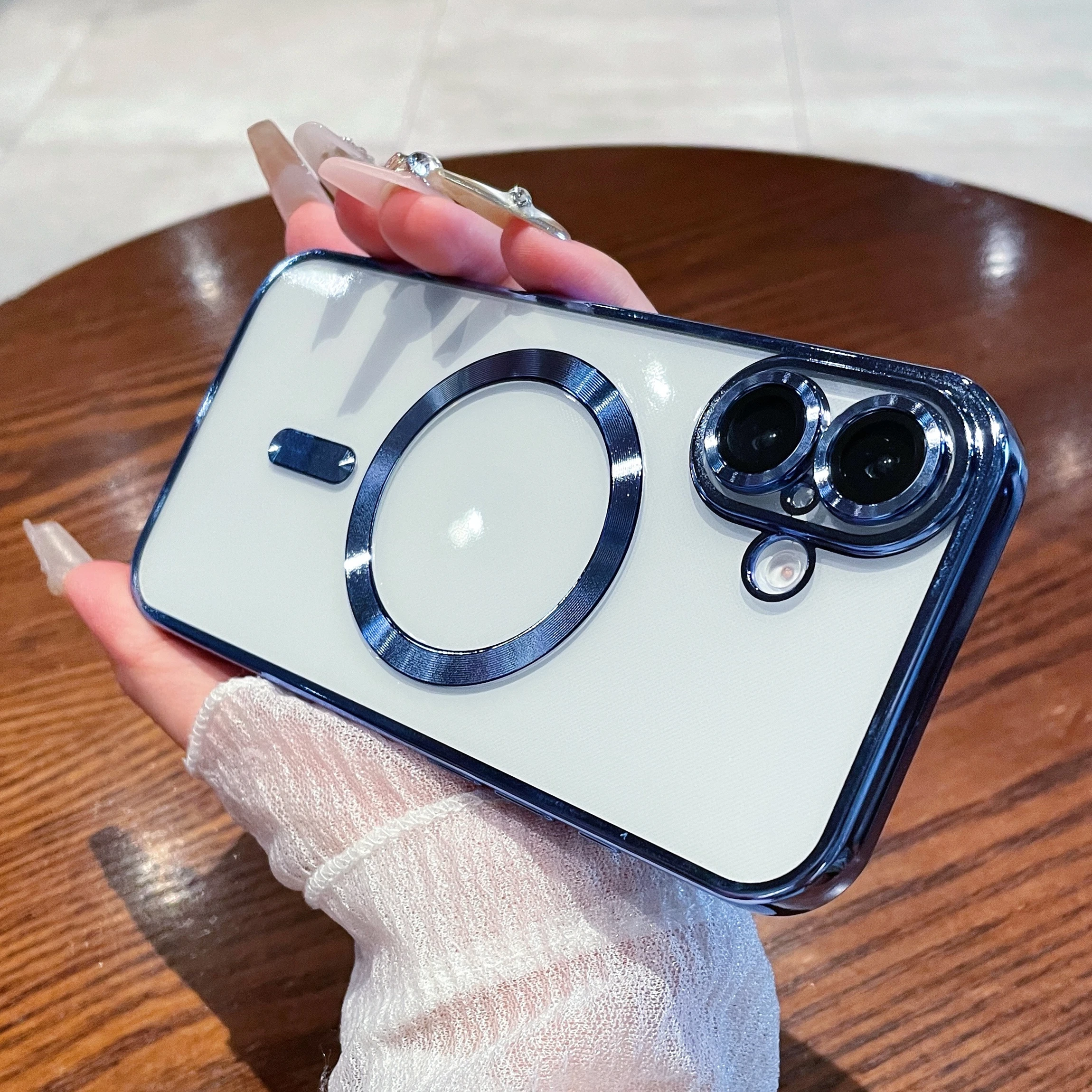 Luxury Plating Magnetic Transparent Phone Case for iPhone 16 15 14 13 12 11 Pro Max Plus for Magsafe Wireless Charge Cover