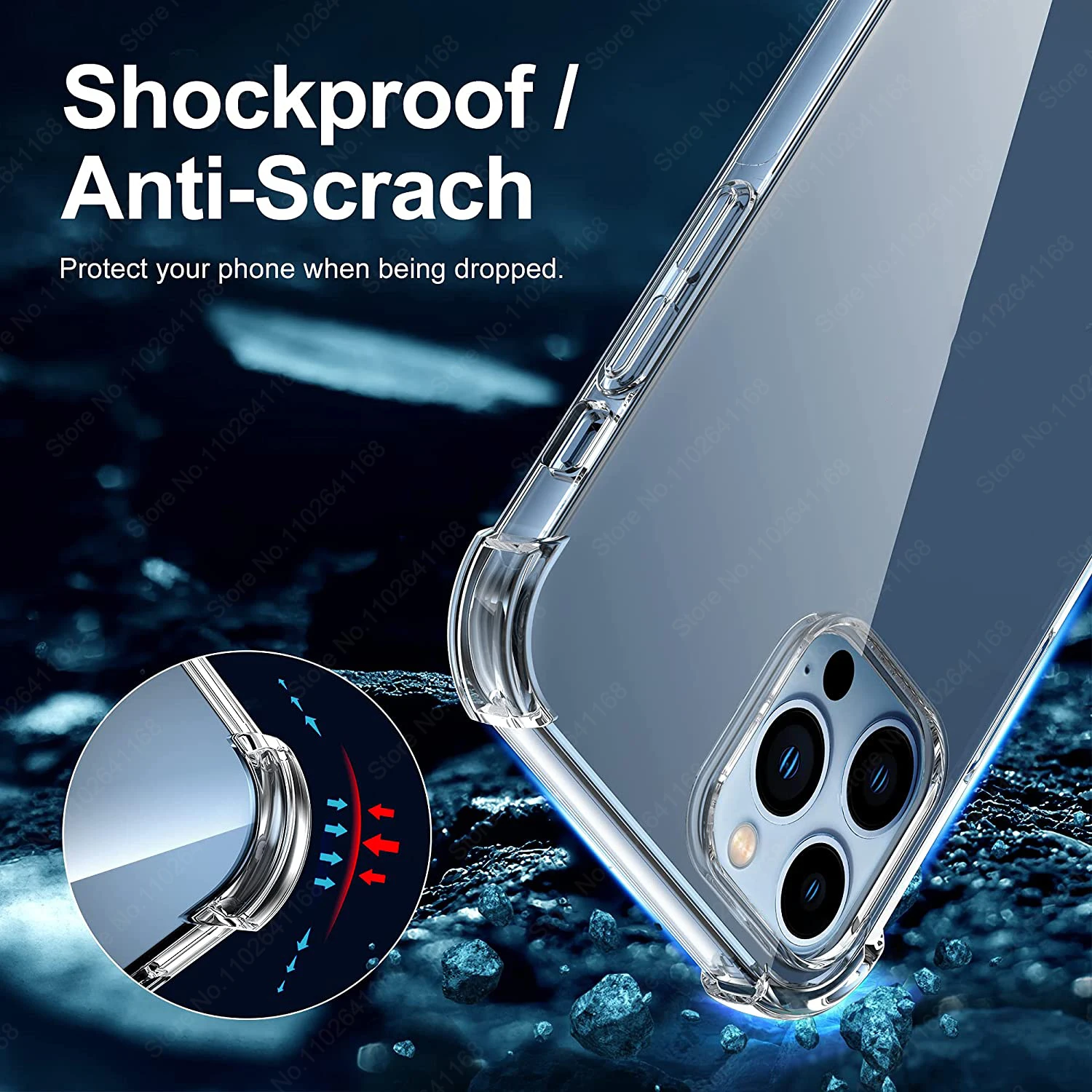 Luxury Shockproof Clear Phone Case For iPhone 16 15 13 12 11 14 Pro Max Mini XR XS 8 Plus Silicone Bumper Transparent Back Cover