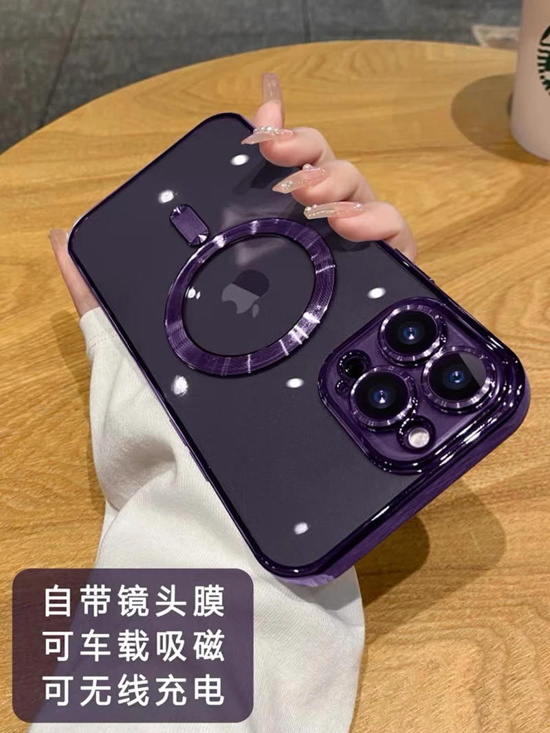 Luxury Wireless Charge Magsafe Phone Case For iPhone 15 14 13 12 11 16 Pro Max Plus Transparent Magnetic Bumper Cover