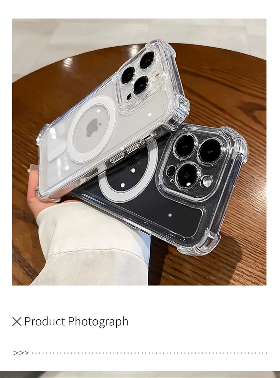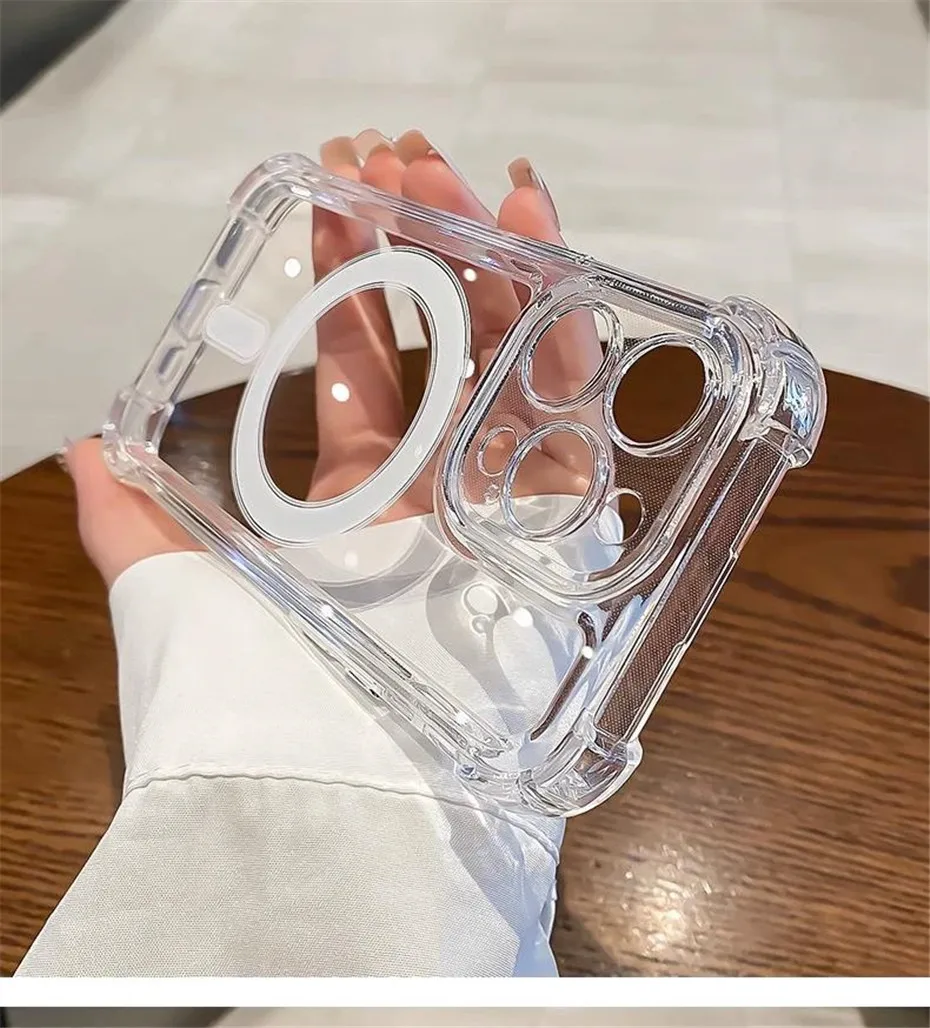 Luxury Wireless Charge Magsafe Transparent Case For iPhone 16 15 14 Plus 13 12 11 Pro Max Magnetic Shockproof Soft Bumper Cover