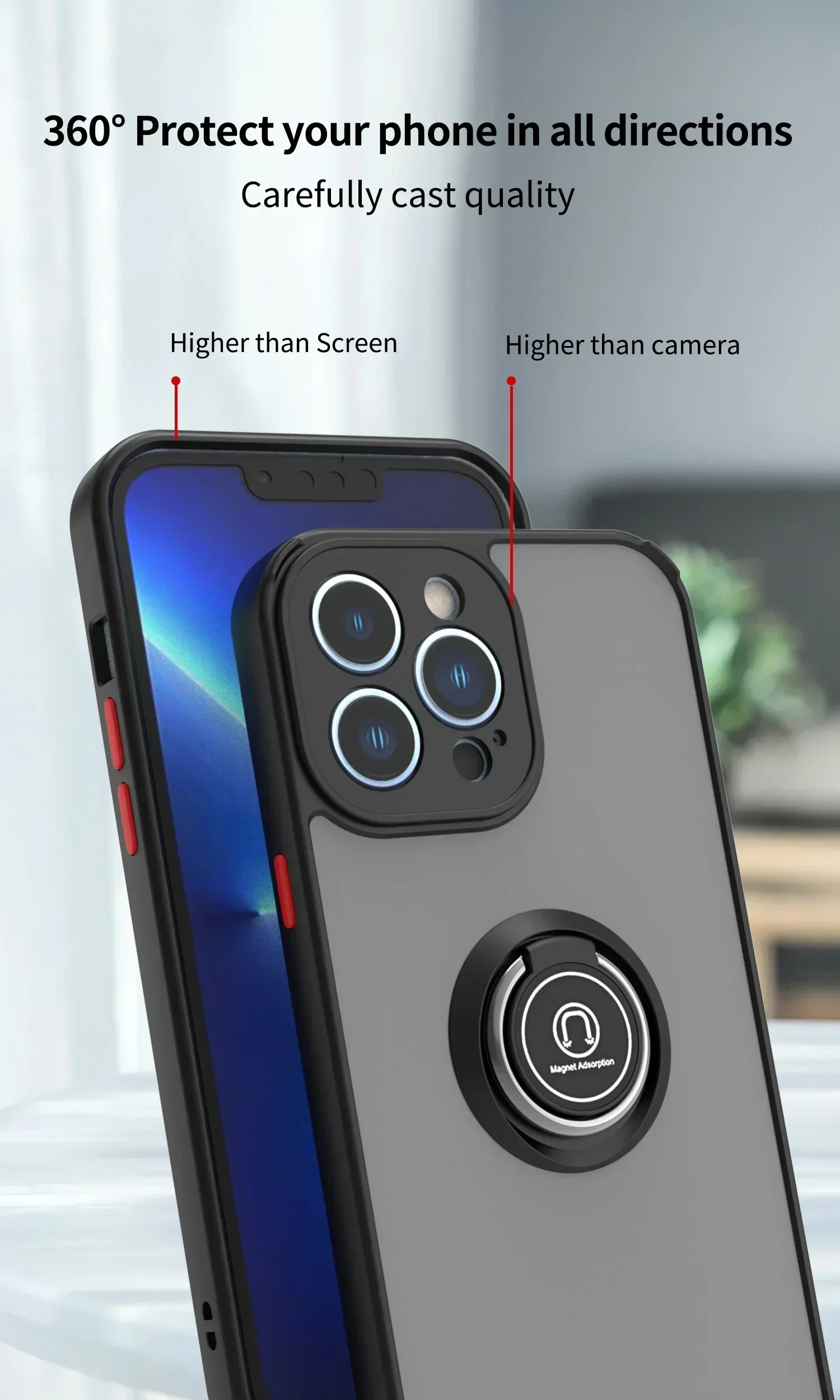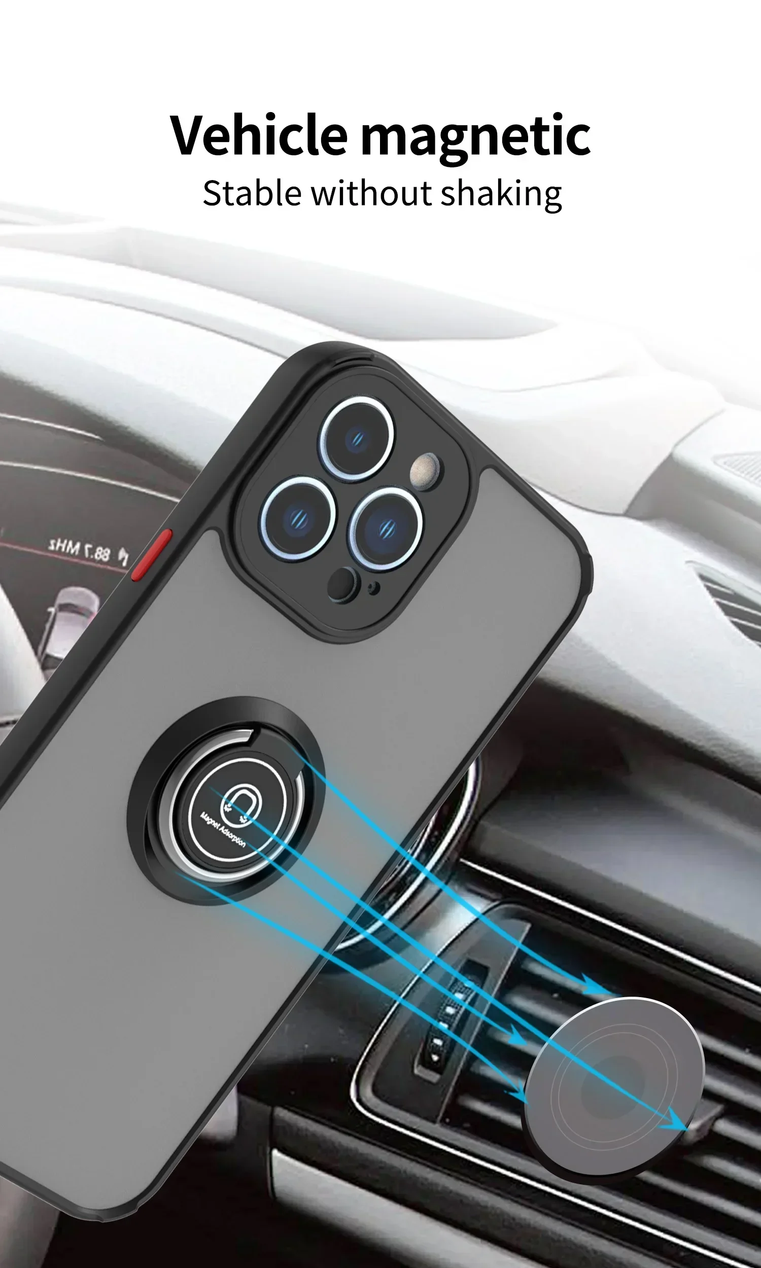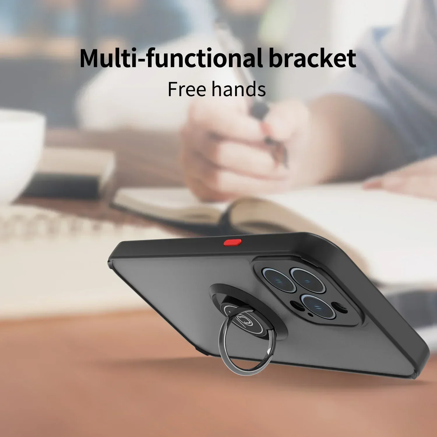 Magnetic Matte Phone Case for iPhone 15 14 13 12 mini 11 Pro Max X XSMax XR 8 7 6 Plus Shockproof Ring Holder Cover