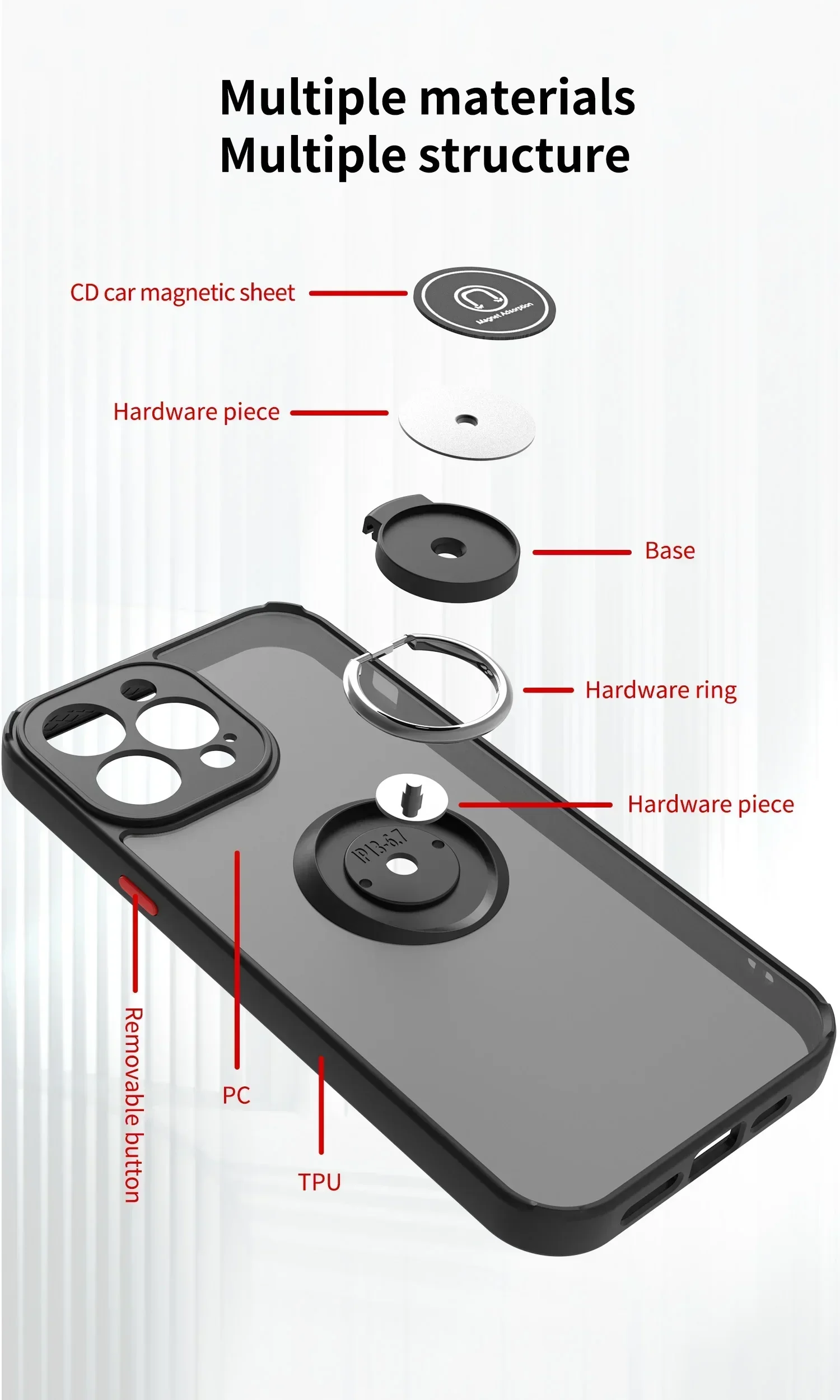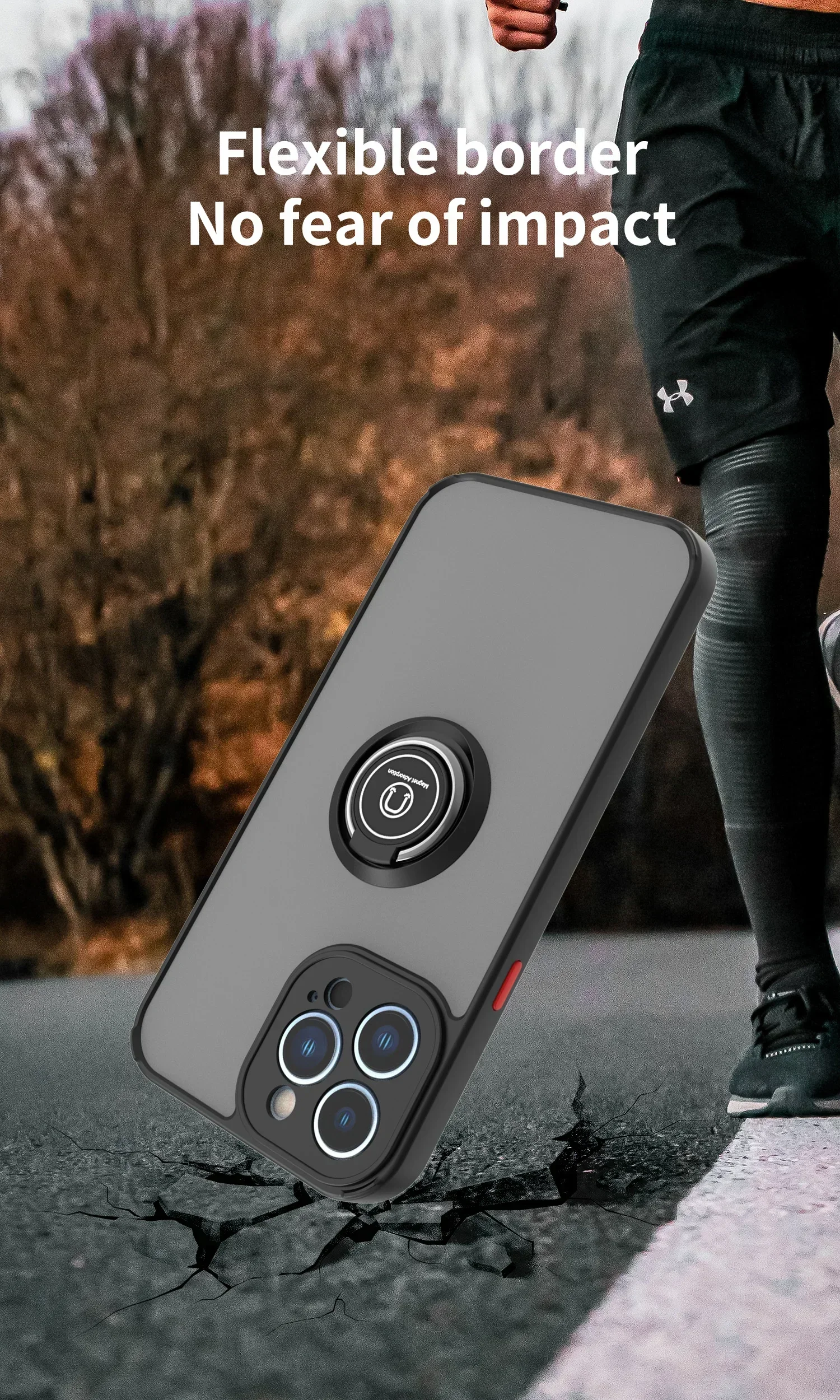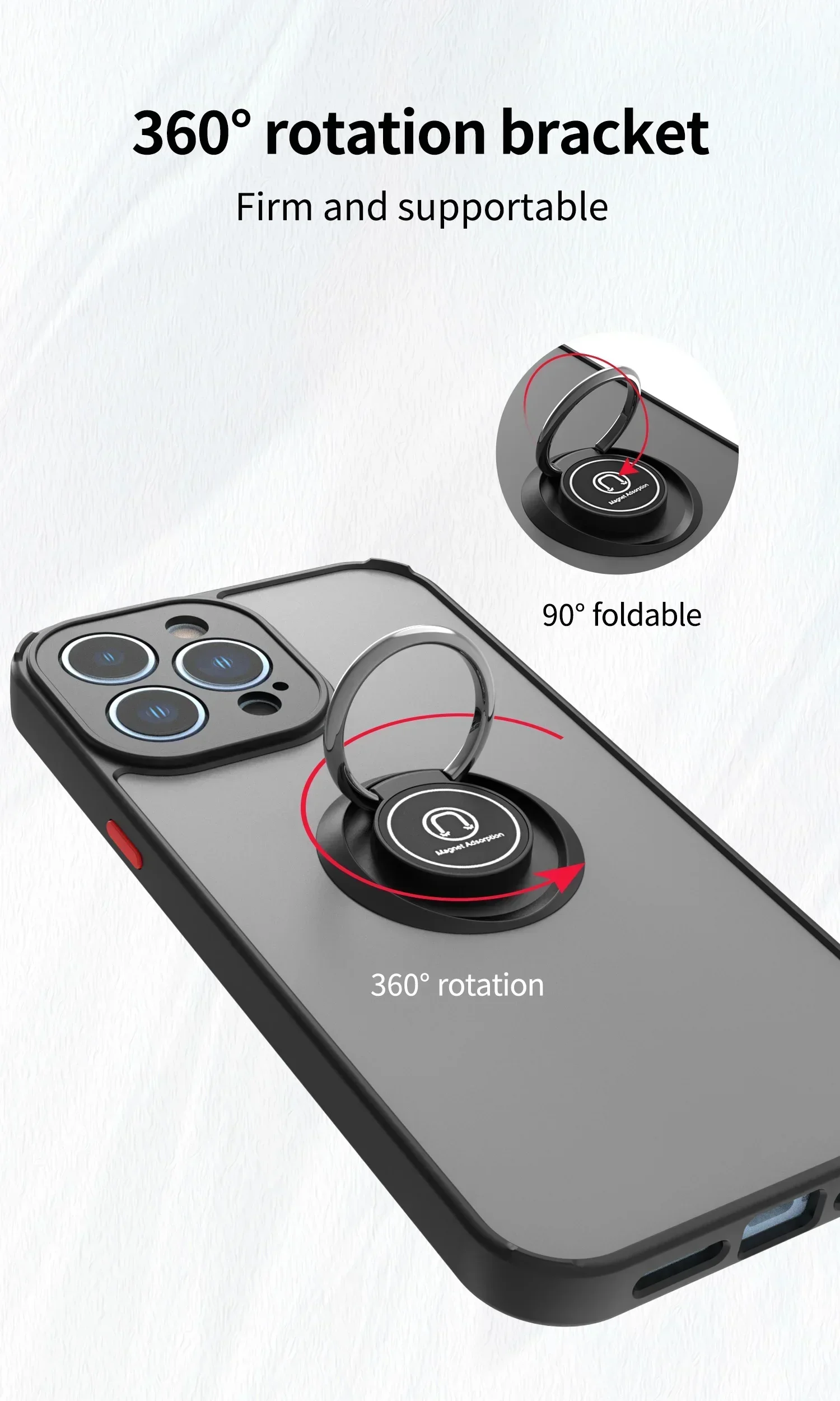 Magnetic Matte Phone Case for iPhone 15 14 13 12 mini 11 Pro Max X XSMax XR 8 7 6 Plus Shockproof Ring Holder Cover