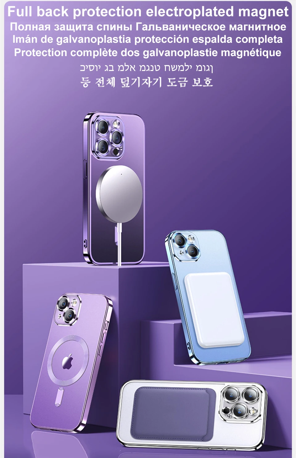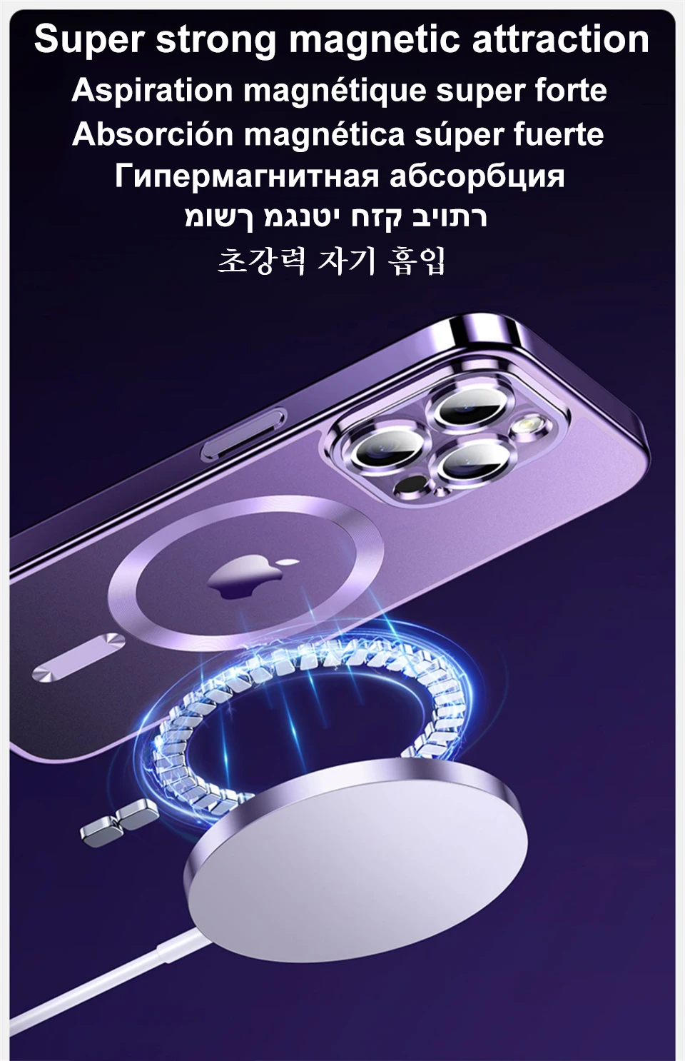Magnetic Plating Case For iPhone 15 16 14 Plus 13 12 11 Pro Max Camera Lens Protector Glass For Magsafe Wireless Charger Cover